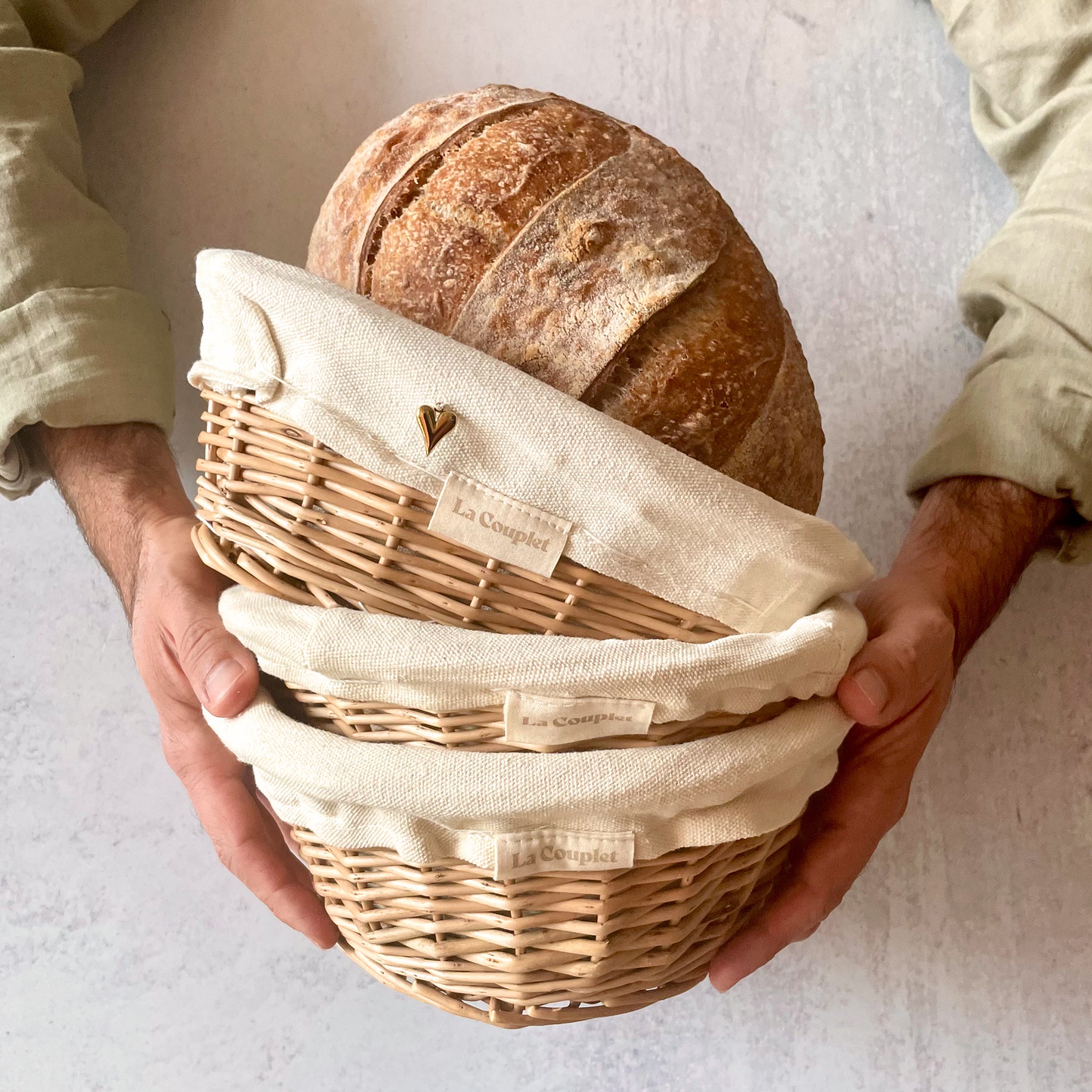 A round wicker proofing basket (also known as a banneton or brotform) is your sourdough’s comfy resting spot. A little nest where it gets to puff up, relax, and prepare for its big moment in the oven.